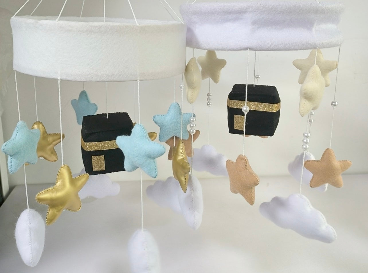 Chez World of Isminia, notre passion pour l’univers de l’enfant, la douceur de la décoration pour bébé et notre amour profond pour la spiritualité se sont réunis pour donner naissance à Kaababy, le mobile coranique pour bébé personnalisé.